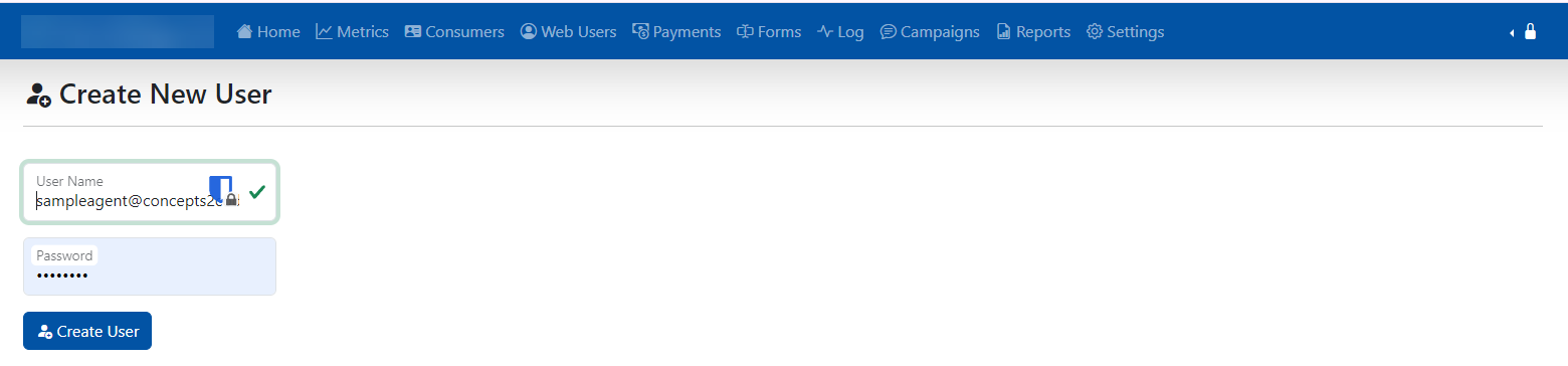 - Click Create User.