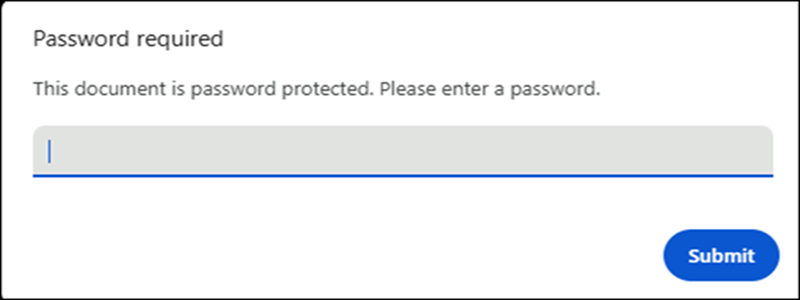 Additionally, when they enter the Customer Portal and click to the view the document they will be also be prompted to enter the custom password, as shown below.