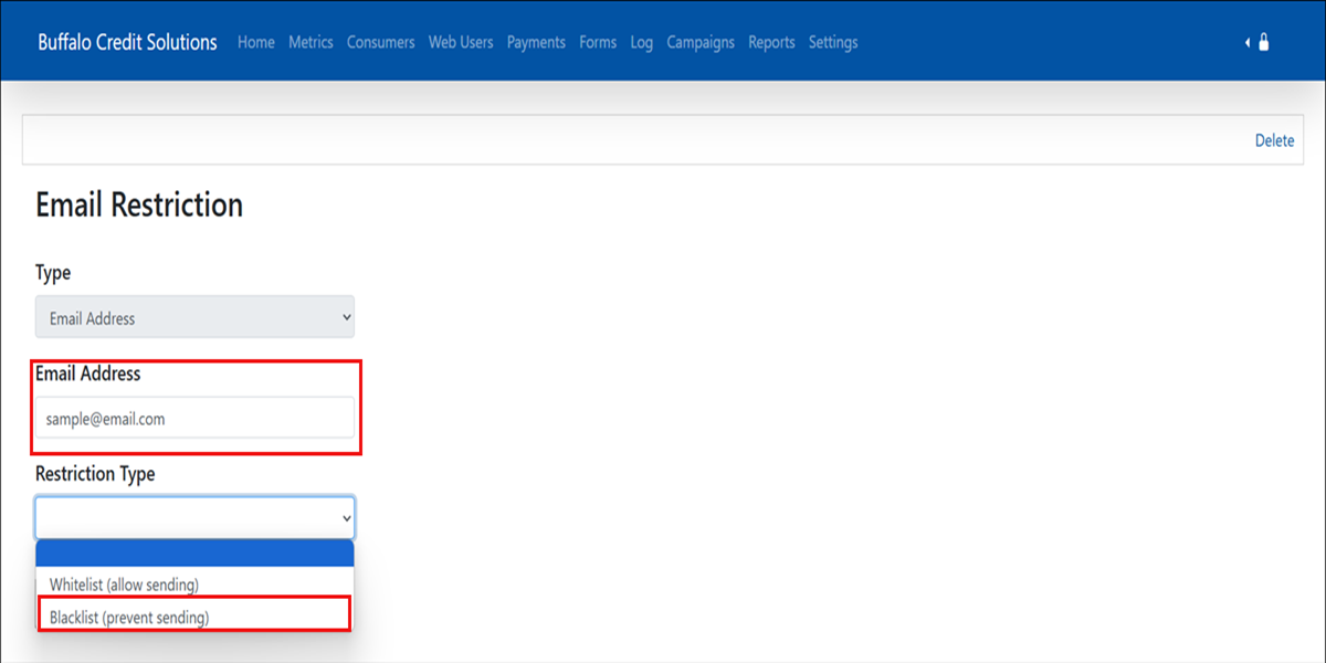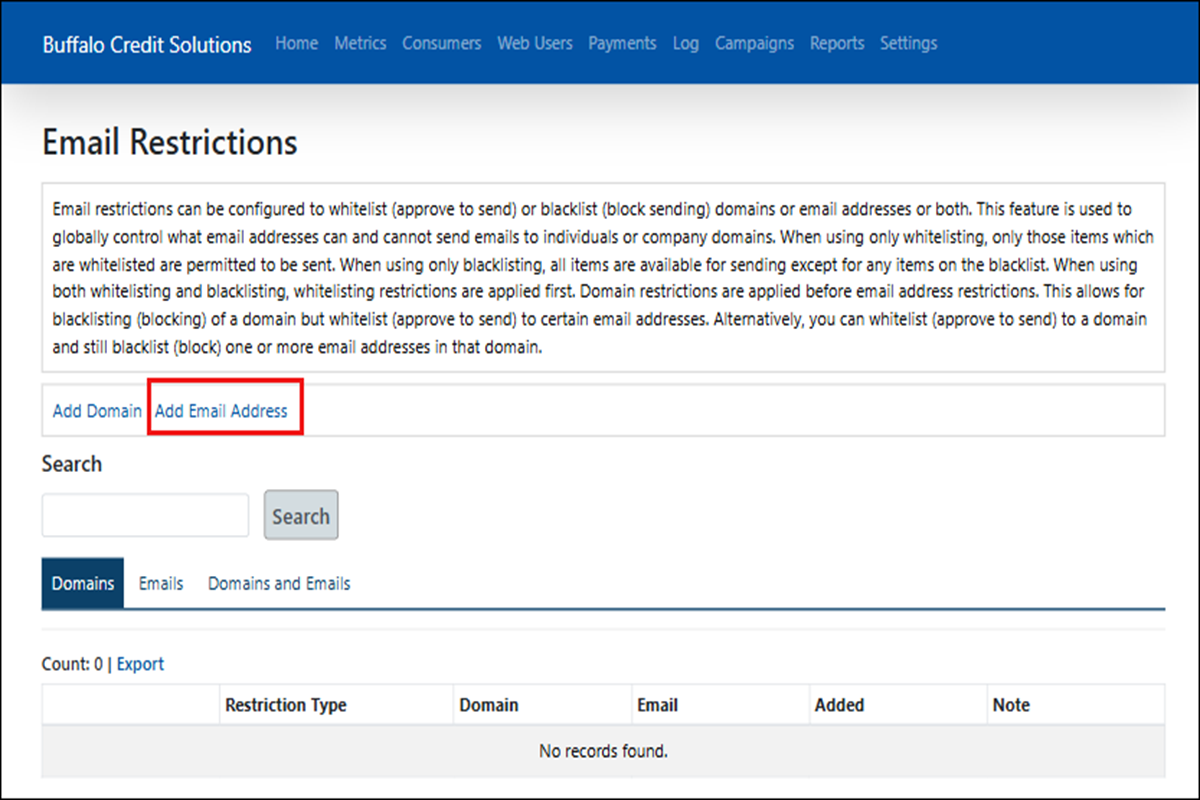There might be times when a consumer has verbally told you that they do not want to be contacted at a certain email address. To restrict any future email communications, follow these steps.